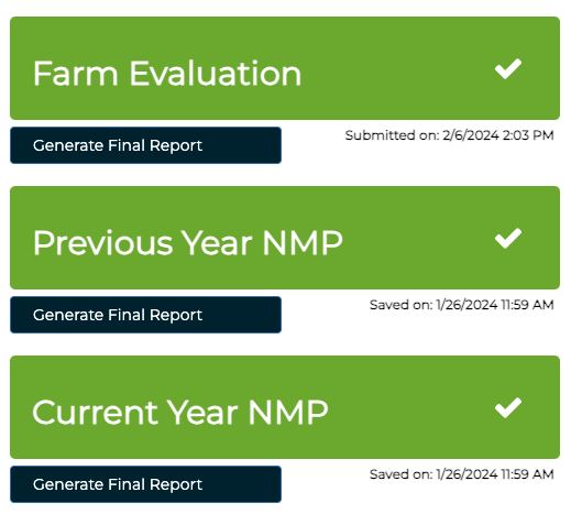 Instructions for the FE/NMP, frequently asked questions, and landowner notification forms are also available on the website. You must click “SUBMIT FINAL” and have each document in green status with checkmark to count as submitted.